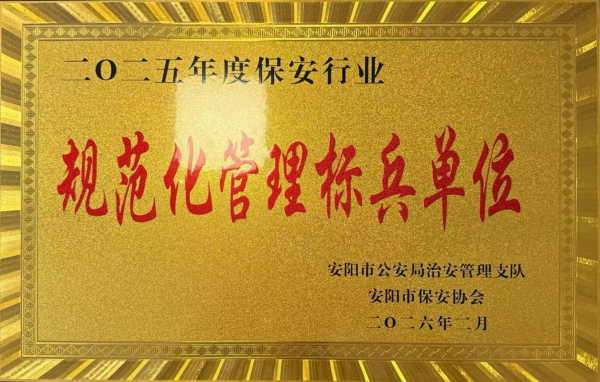 2月10日上午,安陽(yáng)市保安協(xié)會(huì)2026年度工作會(huì)議隆重召開(kāi)。會(huì)上,洹河保安公司被授予“保安行業(yè)規(guī)范化管理標(biāo)兵單位”榮譽(yù)稱(chēng)號(hào),這是行業(yè)主管部門(mén)與協(xié)會(huì)對(duì)洹河保安公司規(guī)范化建設(shè)、精細(xì)化管理與高品質(zhì)安保服務(wù)的高度認(rèn)可與充分肯定。
